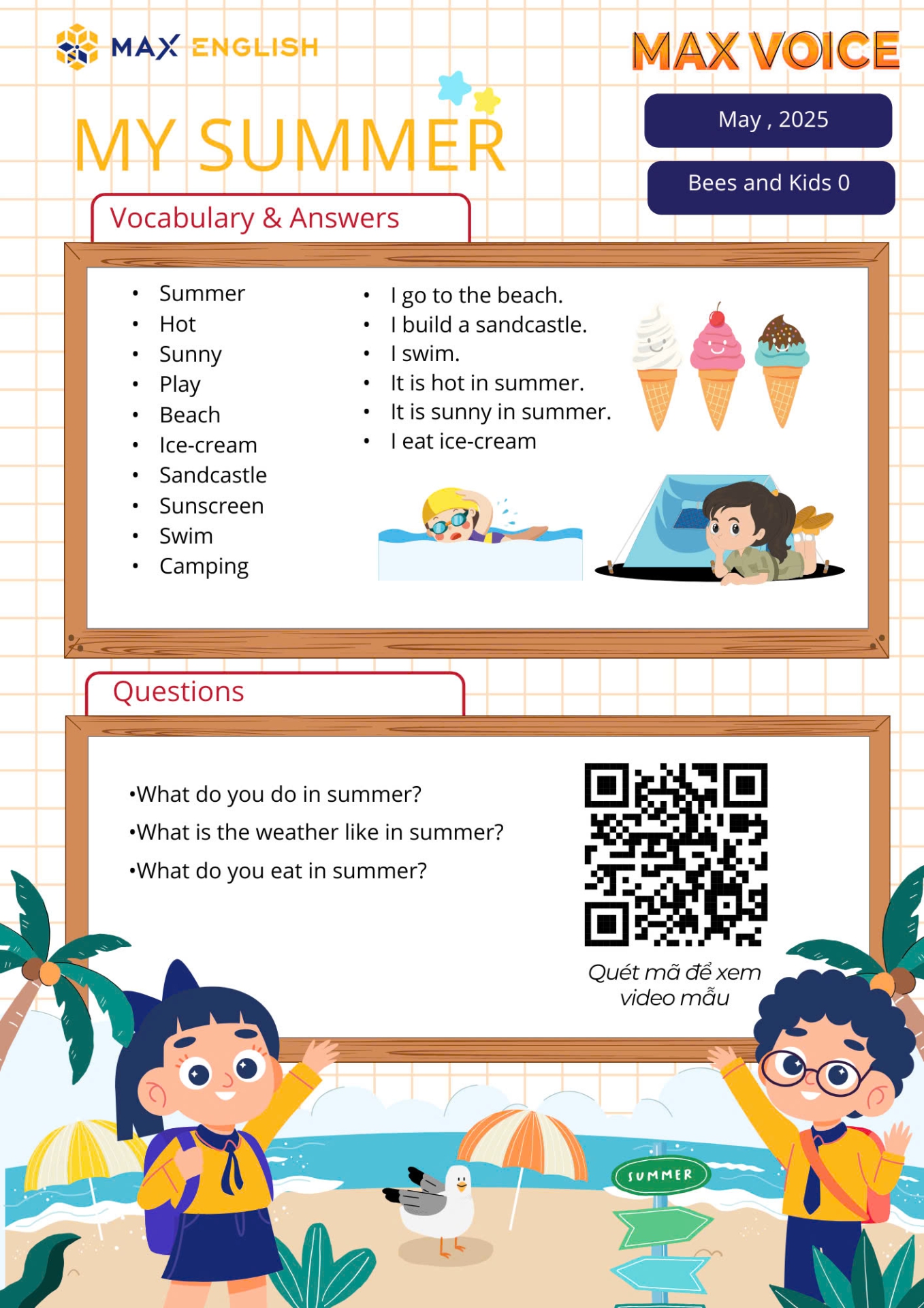✔️ Làm quen với từ vựng, cấu trúc câu về mùa hè: hoạt động, thời tiết, đồ ăn, điểm đến…